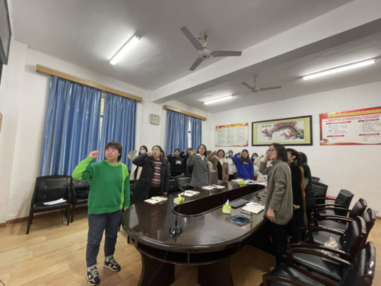 党日活动接近尾声,廖力老师指出近期工作任务重要且繁多,凡事应提前准备,她鼓励大家继续发挥吃苦耐劳的精神,充分展现支部党员的风采。此外,苏银花书记还号召大家要时刻牢记党员使命,在党和国家需要之时,积极贡献自己的力量。