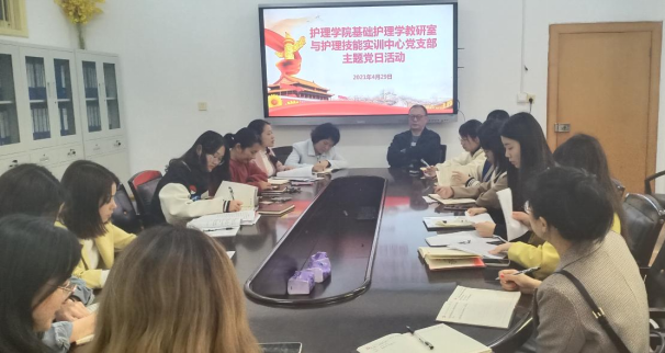 2021年4月29日下午,金年会jinnianhuicom基础护理学教研室与护理技能实训中心党支部在学院会议室开展主题党日活动。会议由党支部书记王蓉主持,党支部全体成员参加。本次主题党日活动以“学史增信”为主题,采用线上线下相结合形式进行。