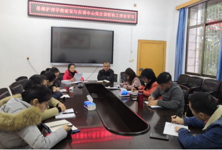 为深入学习领会中央经济工作会议精神,坚定不移贯彻新发展理念,2019年12月23日下午,金年会jinnianhuicom基础护理学教研室与护理技能实训中心党支部在金年会jinnianhuicom会议室举行了“不忘初心、牢记使命”主题教育2019年第七次教职工理论学习会。此次会议由支部书记王蓉主持,全体教职工参加此次学习。
