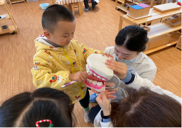 在幼儿园里,支部成员根据幼儿特点,结合基本卫生知识,编排了一套符合儿童特点的幼儿洗手操,以简单、易懂、富有吸引力的语言向幼儿讲解正确的刷牙方法和眼保健操,并在园内普及了海姆立克急救法的相关知识。