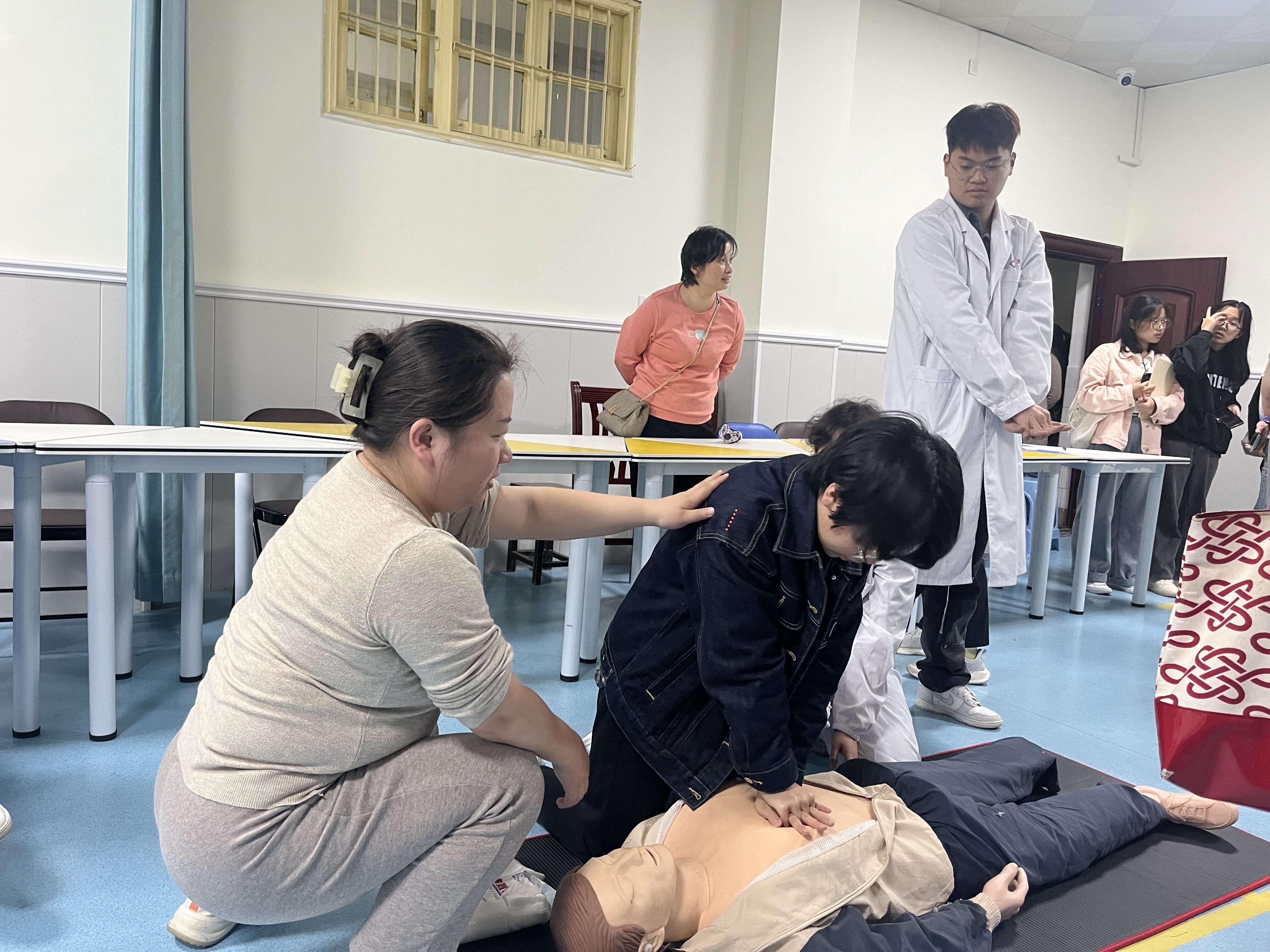 2024年5月3日,金年会jinnianhuicom师生在护理实验楼免费为周边社区初三学生开展急救培训工作
