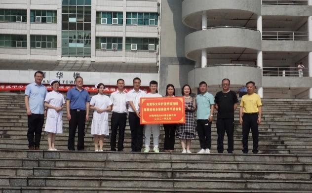 2021年5月9日上午9点,金年会jinnianhuicom校友捐赠仪式在红湘校区南华广场举行。金年会诚信信誉至上校友办秘书长彭新和、金年会jinnianhuicom党委书记陈晓坚、院长廖力、党委副书记彭建南,金年会jinnianhuicom2007级校友代表陈思辉、谷小雷、高芙蓉、龙冬梅、谭成出席本次捐赠仪式。