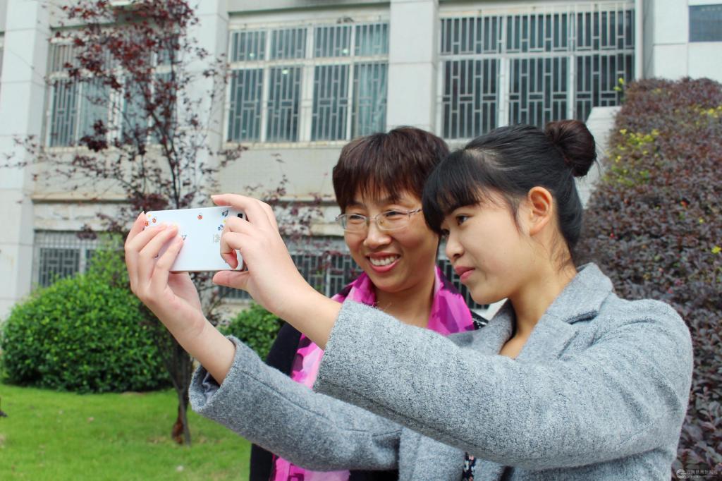 2015年11月14日,一名2015级的新生在和1985级的学姐合影,跨越30年,再续校园情。上演该校最“老”护士与最年轻护士的交流,传承与延续“天使”的精神。