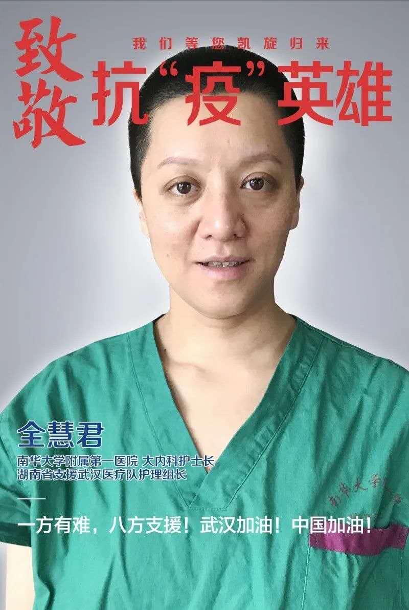 在她与全体医护人员的默契配合和共同努力下,方舱医院院感、护理及病房管理工作有序开展,方舱医院也实现轻症患者零死亡、出院患者零回头、医护人员零感染、安全生产零事故、进驻人员零投诉的“五个零”的目标。全慧君带领护理团队踏实、雷厉风行的工作作风更得到了当地医护人员的高度赞扬与认可。他们说:“从你们身上我们全面见识了湖南人吃得苦、耐得烦、霸得蛮的精神,向你们学习,向你们致敬!”一位经过全慧君护理痊愈的患者,将她那黑眼圈、憔悴不堪且变形的脸用手机拍下来,一边使劲亲吻,一边念叨着“乖女儿,我有7个孩子,你是我最美最漂亮的孩子……”这张照片被大妈的家人、亲属、朋友广泛地转发,大家在朋友圈后面都用红唇表情向她表示由衷的热吻……