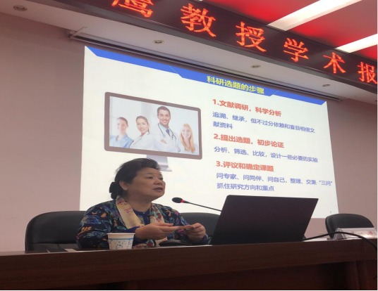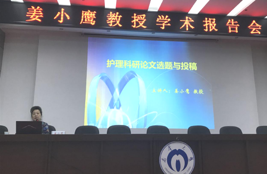 姜小鹰教授作了题为“护理科研论文选题与投稿”的学术报告。她从护理科研的原则、技巧以及中华护理杂志社下属期刊投稿流程等方面进行阐述,引导大家从护理行业发展以及审稿专家的角度梳理护理科研选题思路、热点领域和注意事项。在讲座之后的提问互动环节,姜老师热情回答了同学们的疑惑,教导同学们要找到自己的价值,学会在锻炼中成长并迎接未来,赢得了同学们的真诚敬佩。