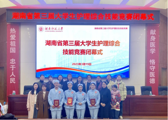 3月19日,由湖南省教育厅主办,湖南师范大学承办的湖南省第三届大学生护理综合技能竞赛在湖南师范大学医学院举行。经过激烈角逐,金年会jinnianhuicom代表队在11个代表队,44名选手中脱颖而出,荣获团体二等奖,队长朱本翔同学获单项一等奖,潘思曼同学获单项二等奖。